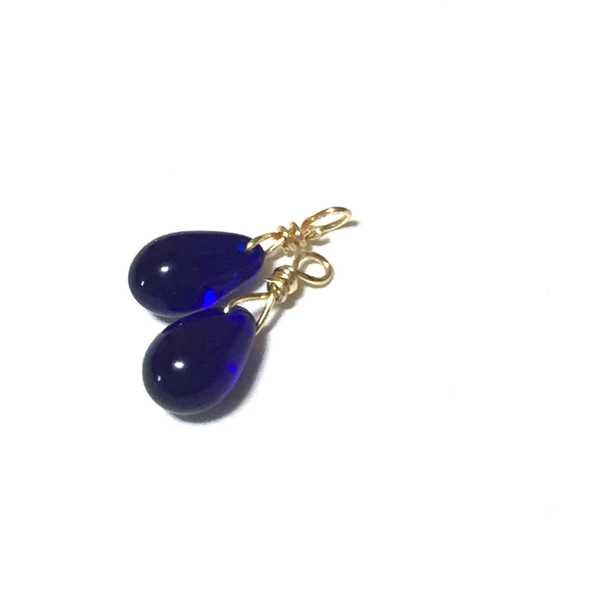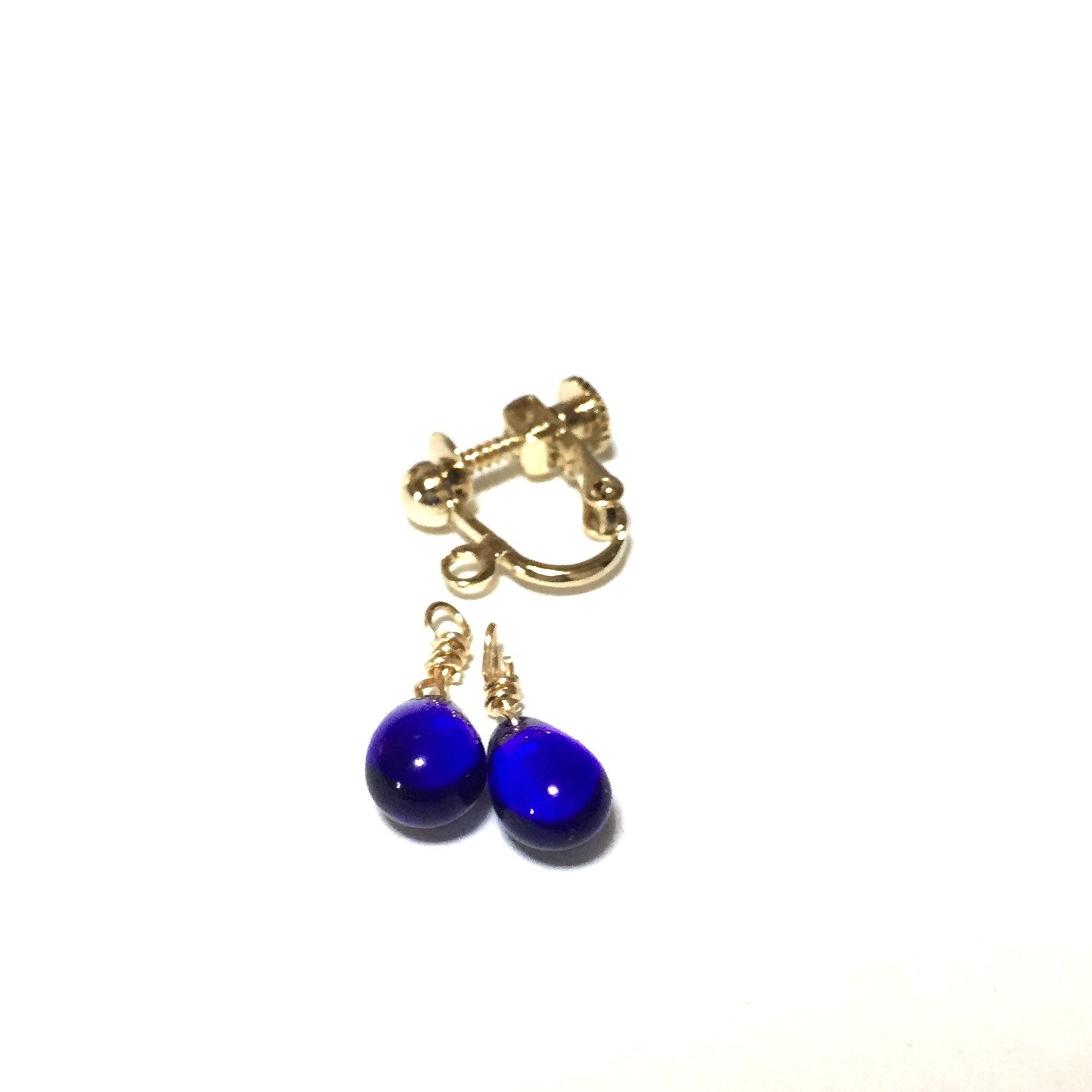 コバルトブルーの小粒チェコビーズ イヤリングです!