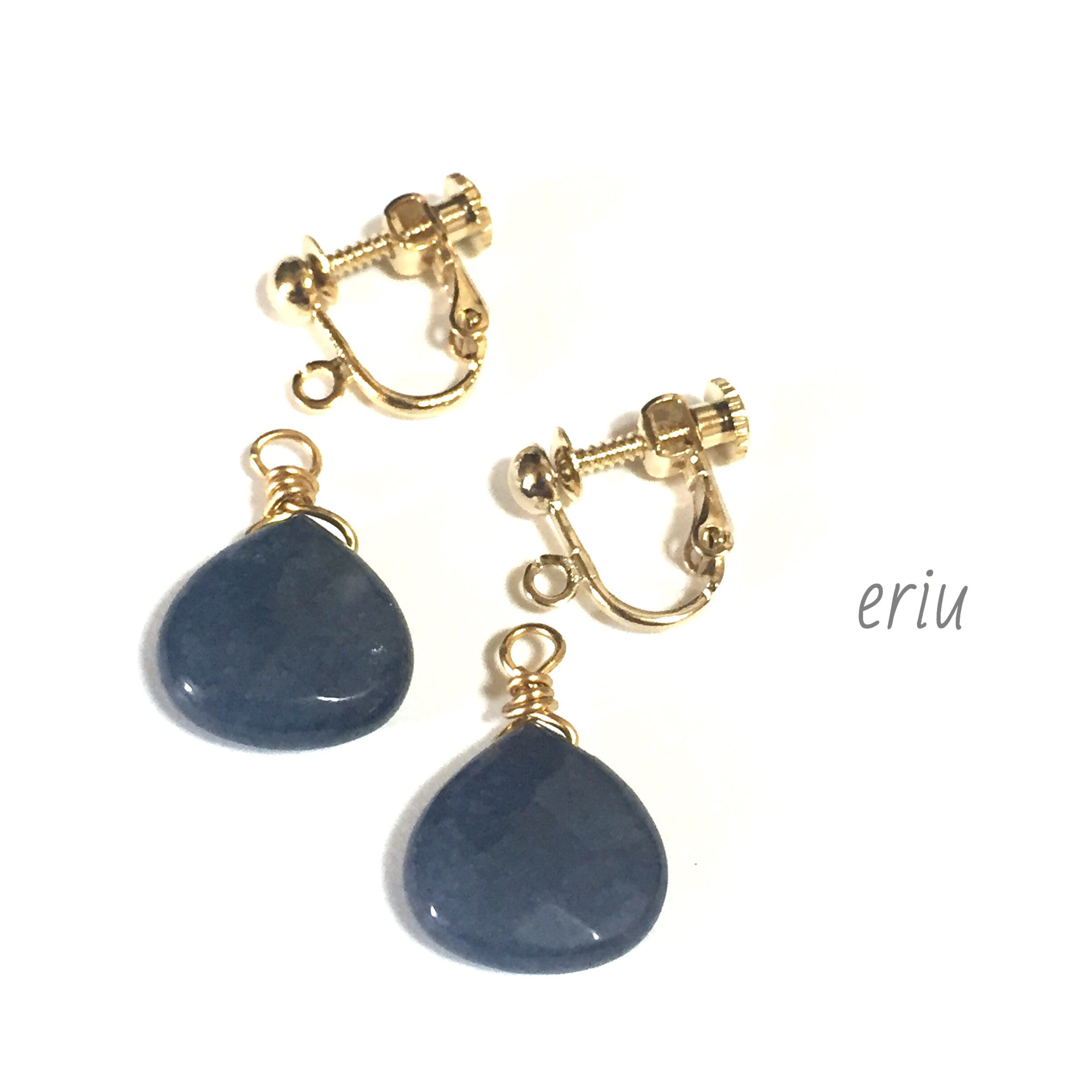 サファイアアゲートを使ったシンプルで上品なひと粒イヤリングです。
