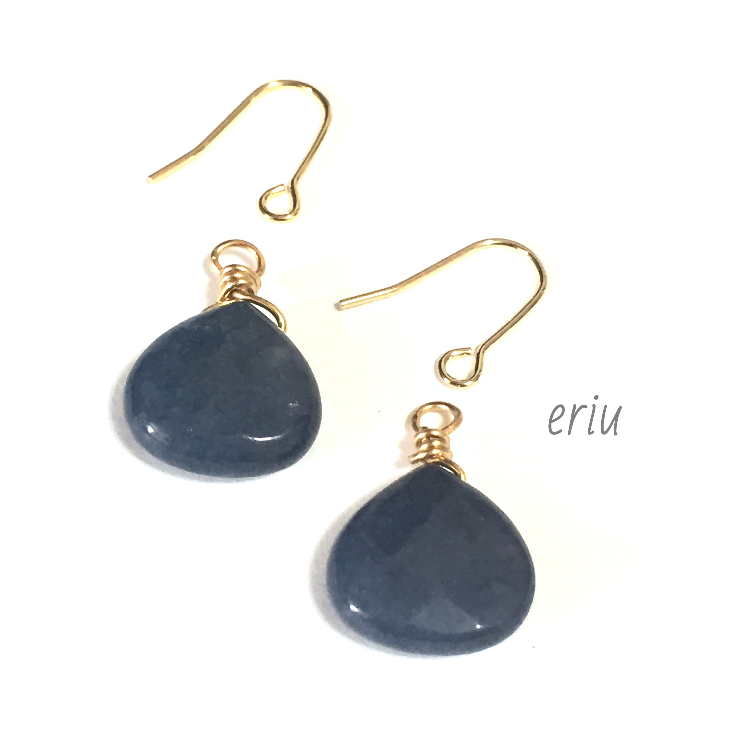 サファイアアゲート 一粒ドロップピアス | ハンドメイドアクセサリー eriu online store