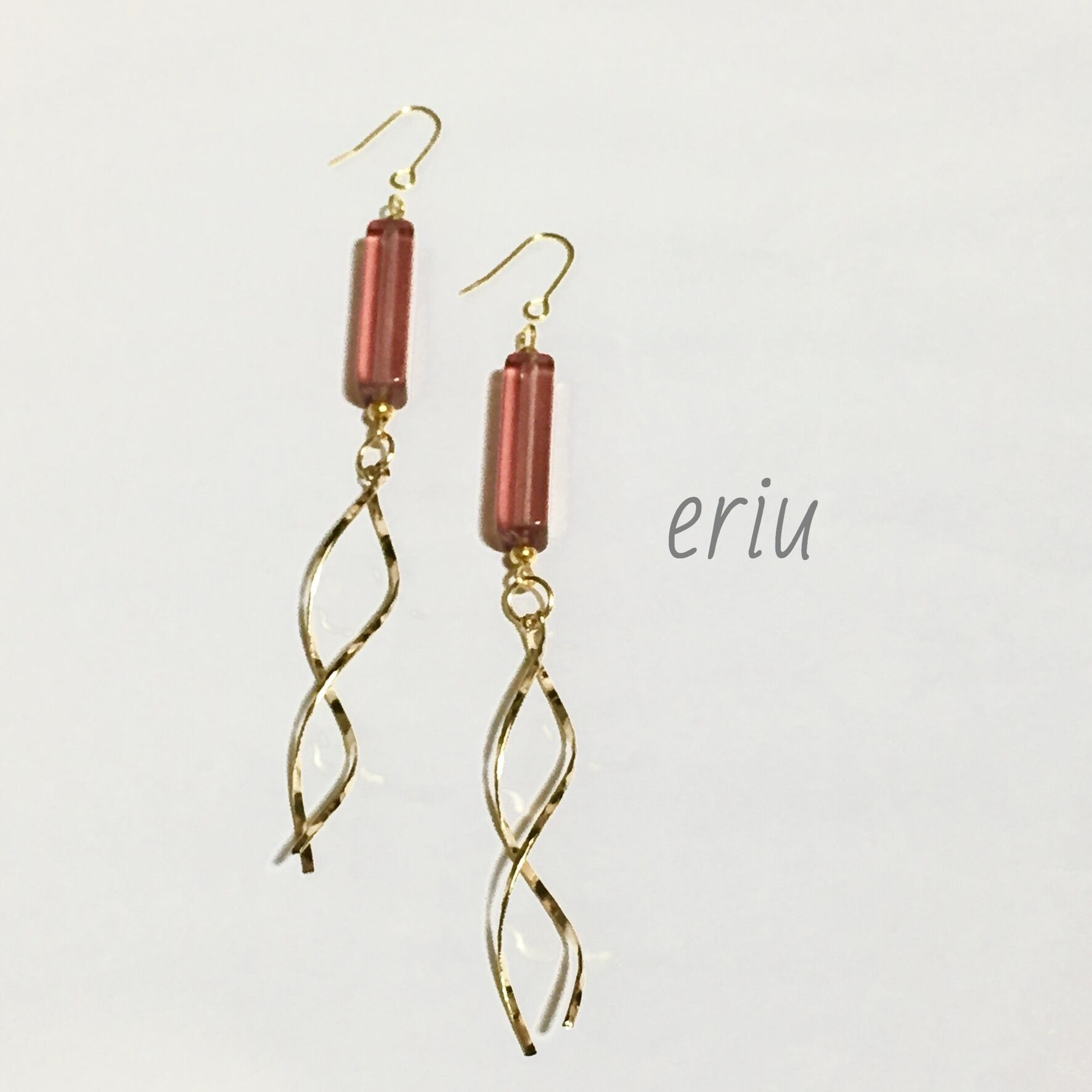 ゴールドカラーのウェーブメタルパーツを使用したピアスです!