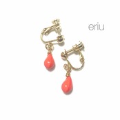 サーモンオレンジのドロップビーズが、ちょこんと耳元でゆれるシンプルなデザイン。