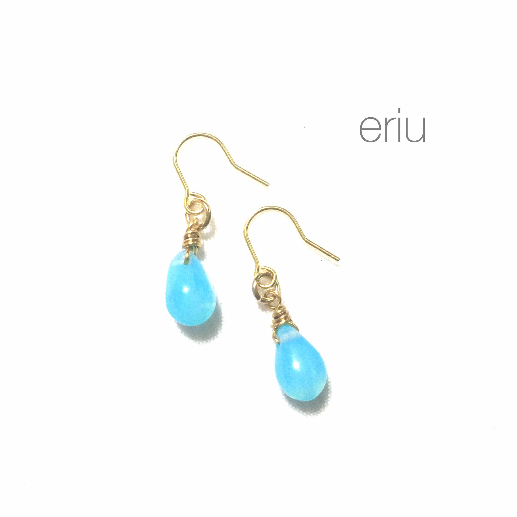 キレイな スカイブルーのドロップビーズが、ちょこんと耳元でゆれるシンプルなデザイン。