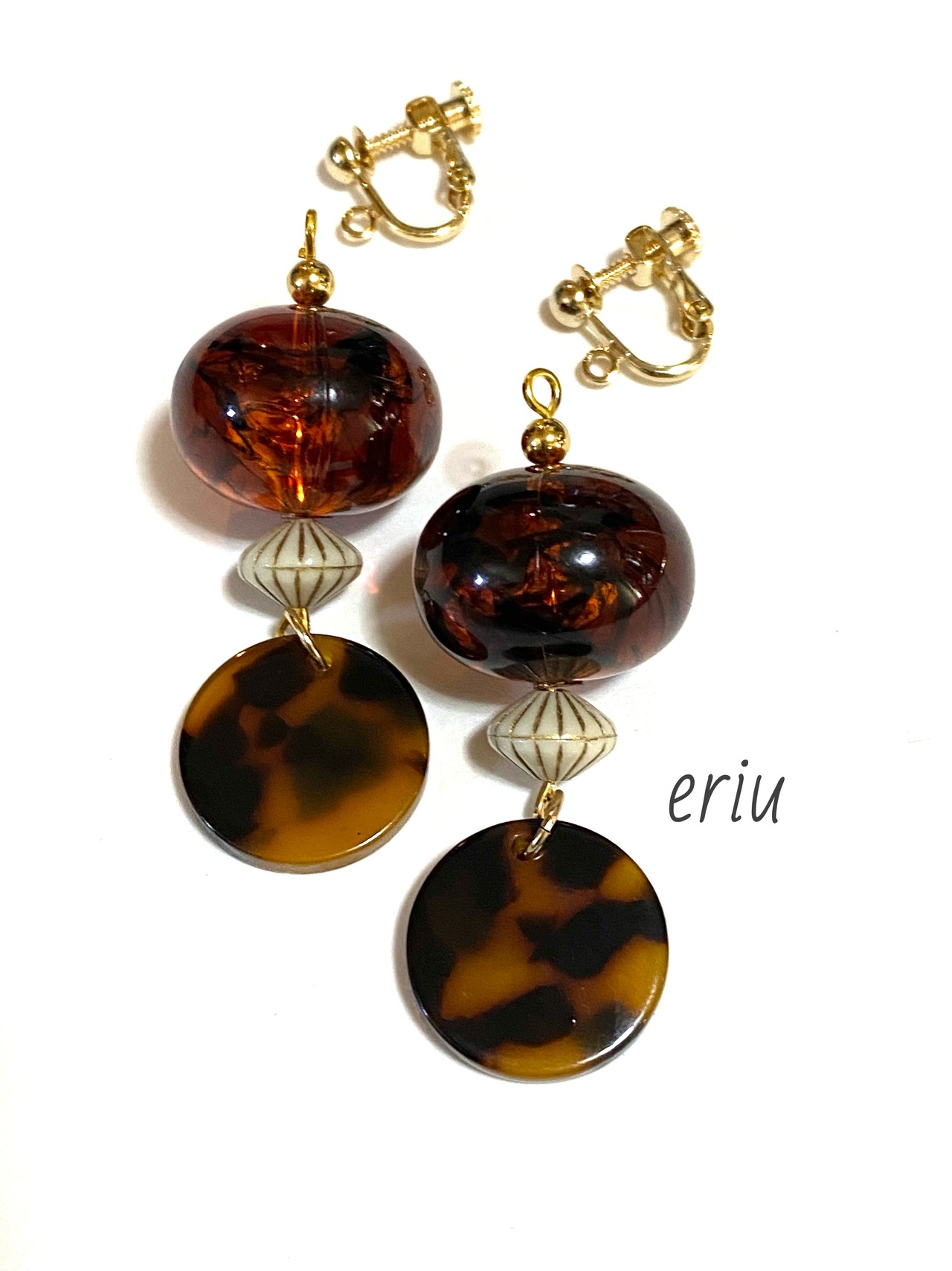 ブラウンマーブル×アイボリー×べっこう イヤリング | ハンドメイドアクセサリー eriu online store