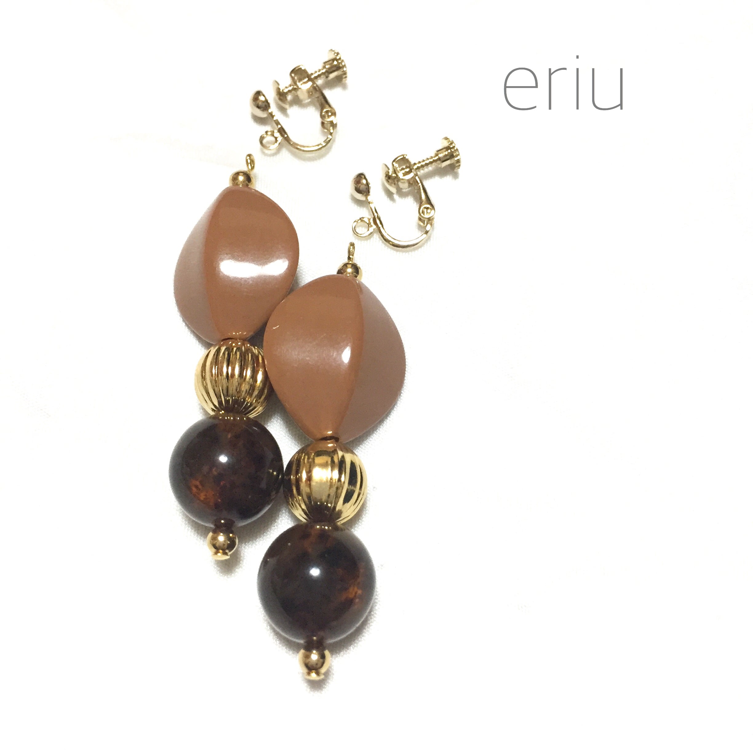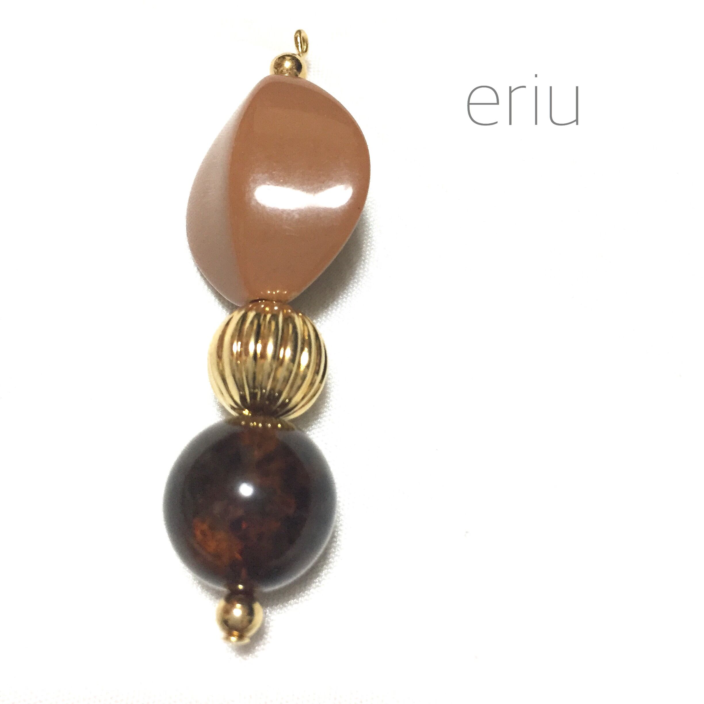 アーモンドのような形のライトブラウンヴィンテージビーズと ブラウンにマーブル模様の入ったヴィンテージビーズを使用した