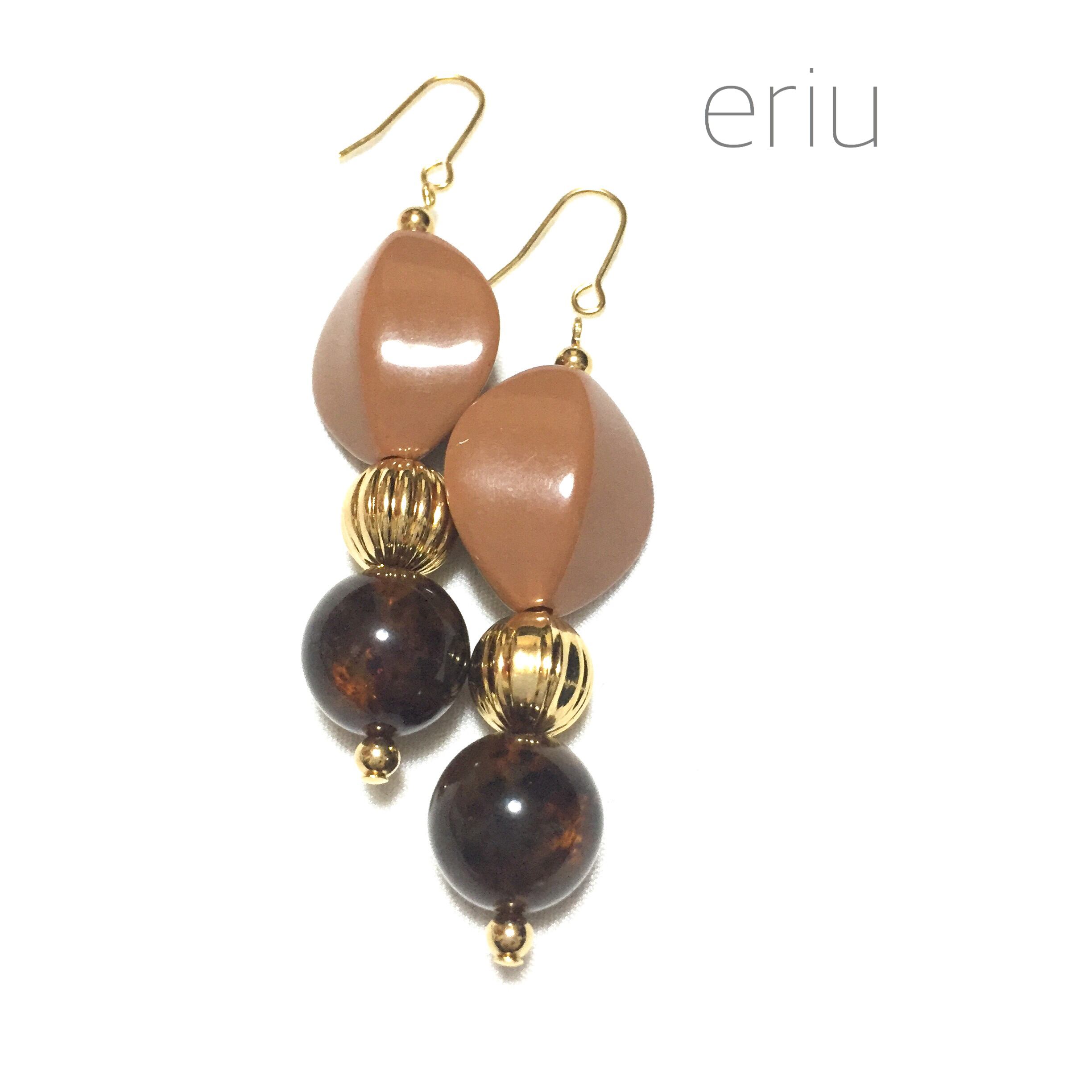 合わせやすいブラウンカラーで、春夏ファッションのポイントになるピアスです。