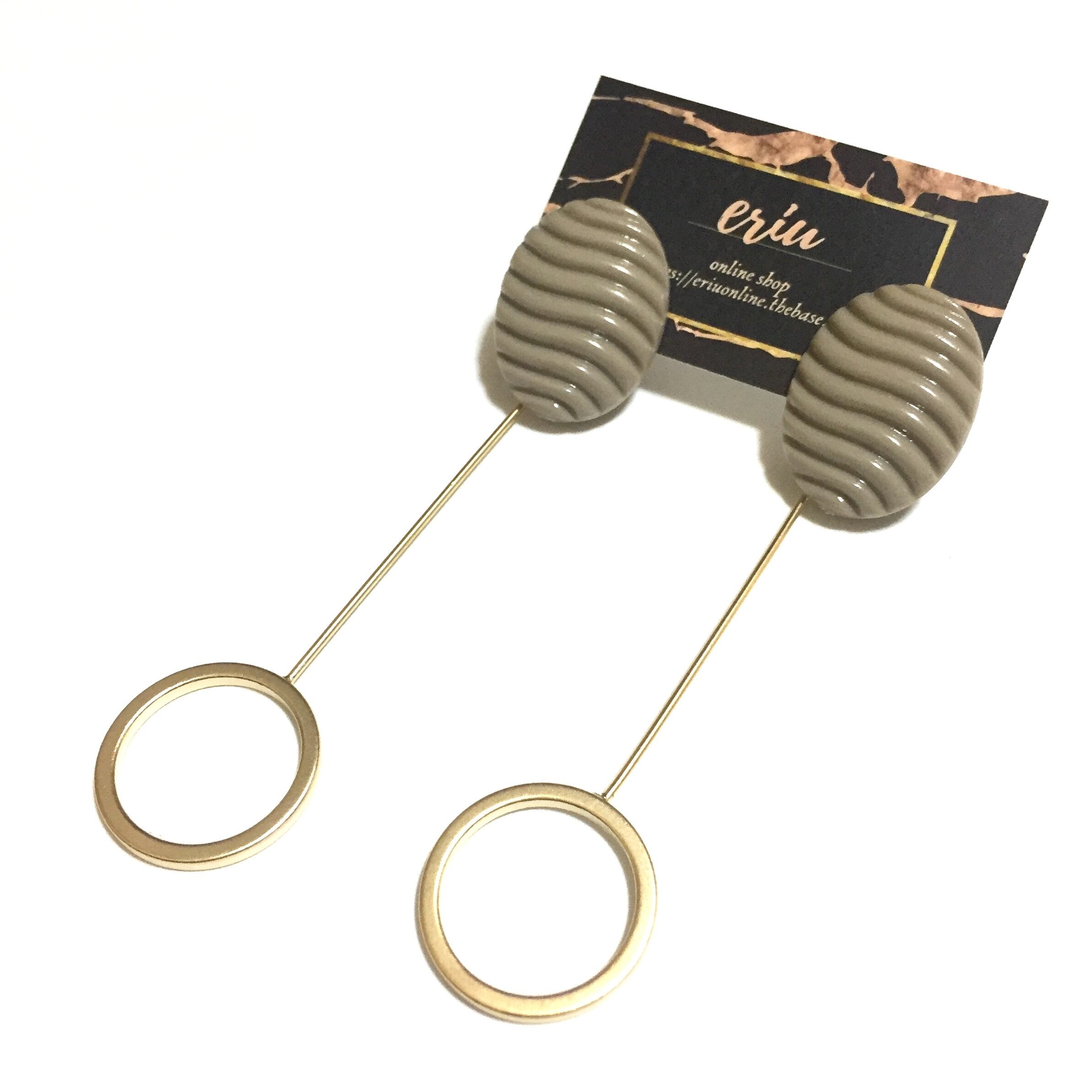 波模様の入ったグレージュのヴィンテージ カボションと ゴールドロングパーツを合わせた